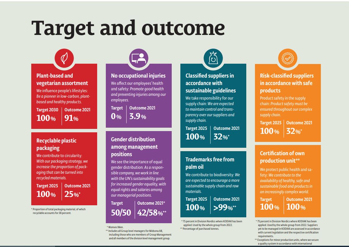 Midsona’s sustainability targets are a result of our work to identify and analyse our material areas, with the highest risks in mind, and all have been valued in the short, medium and long term (>10 years). An important basis for this work was our stakeholders’ expectations and perspectives, which helped update our strategy with new realistic, measurable and time-limited fixed targets. The targets have made it easier for us to measure our progress and it facilitates the management of our greatest and most material sustainability risks and opportunities.